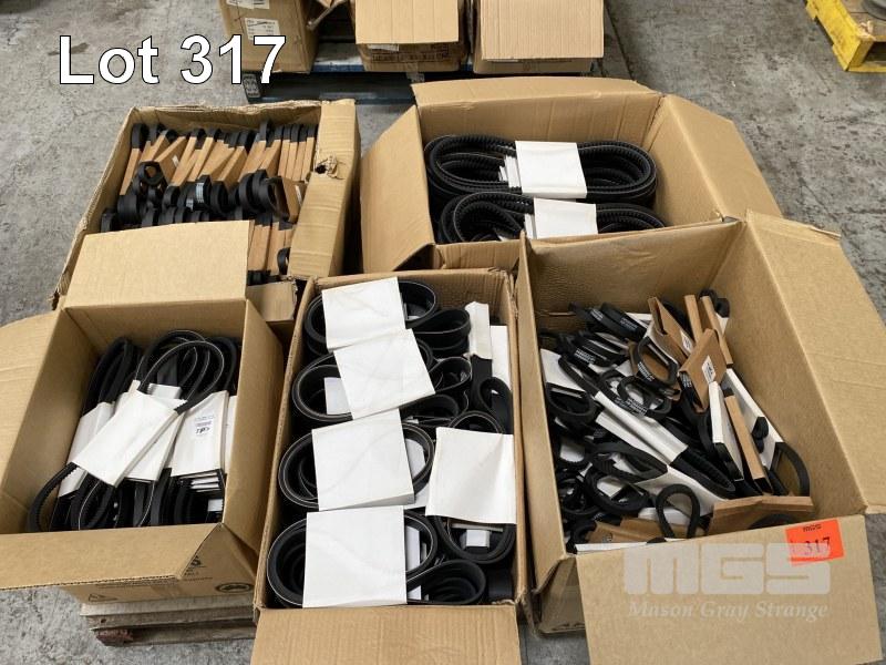 LARGE QUANTITY ASSORTED NEW FAN & DRIVE BELTS, TOTAL PARTS, 5 x BOXES