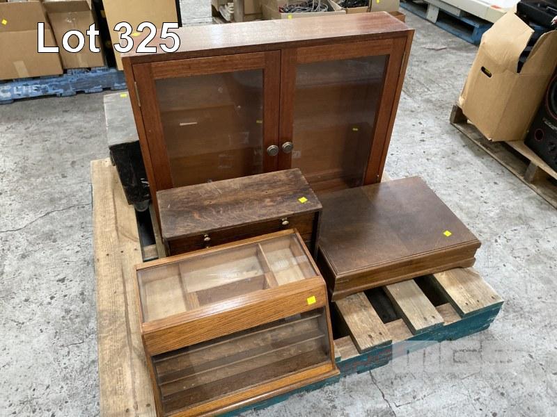 TIMBER DISPLAY & STORAGE BOXES/CABINETS, GLASS DOOR, ASSORTED SIZES,