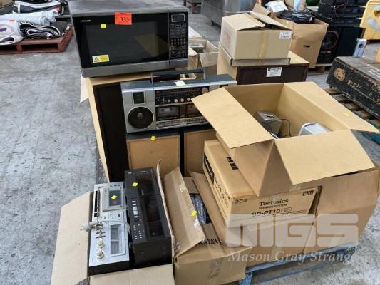 MICROWAVE, CASH REGISTER, SPEAKERS, HI-FI EQUIPMENT, ETC