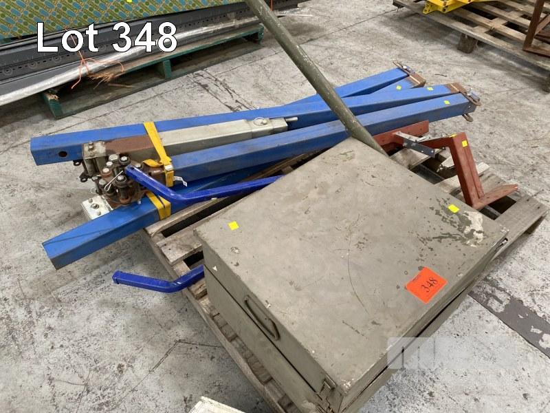 DRUM ROLLER STAND, HEAVY DUTY, TOOLS, VINTAGE US ARMY TRAVEL CASE, ETC
