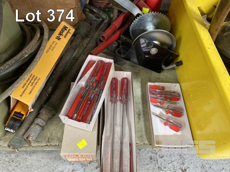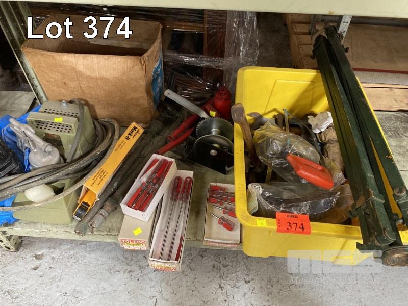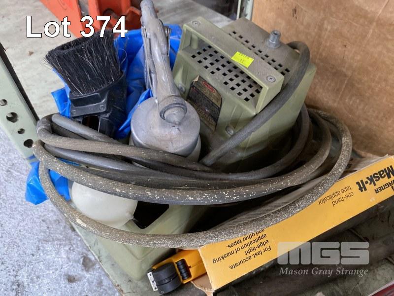 SPRAY PAINT GUN & COMPRESSOR, TOLEDO SCREW DRIVERS, DRUM PUMPS, JACK, WINCH, CLAMPS, ETC