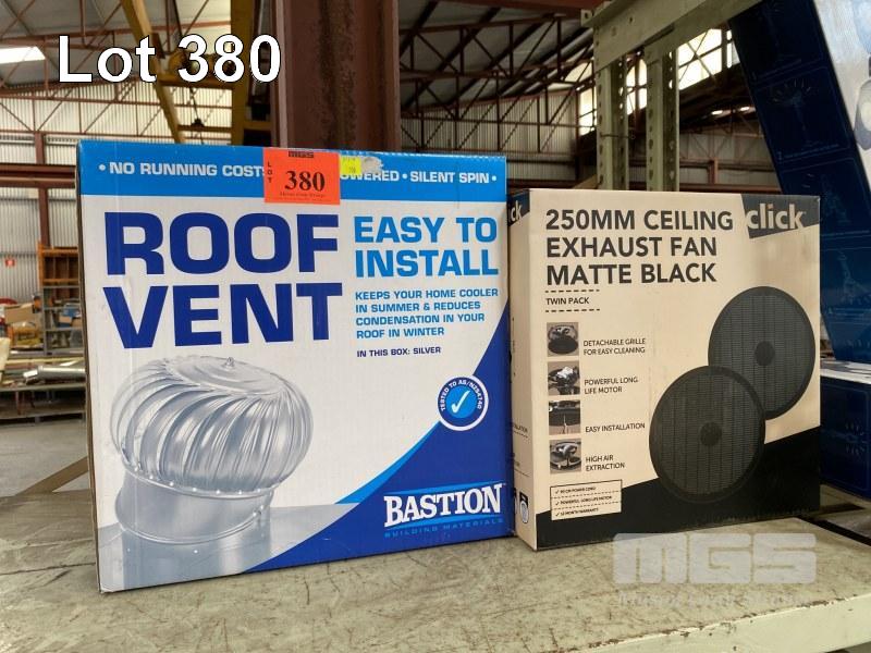 ROTARY ROOF VENTS, BASTION & 2 x 250mm CEILING FANS, NEW IN BOXES