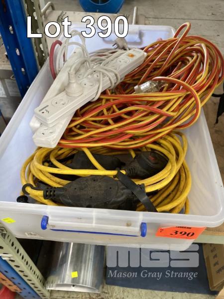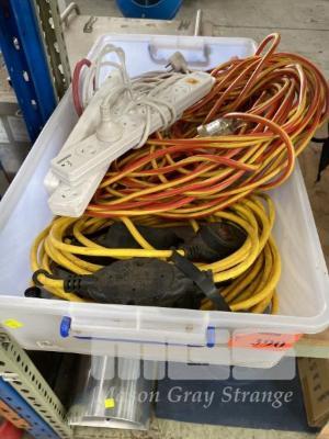 ASSORTED 240V EXTENSION CABLES & POWER OUTLETS, 1 x TRAY