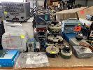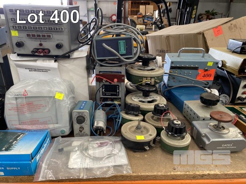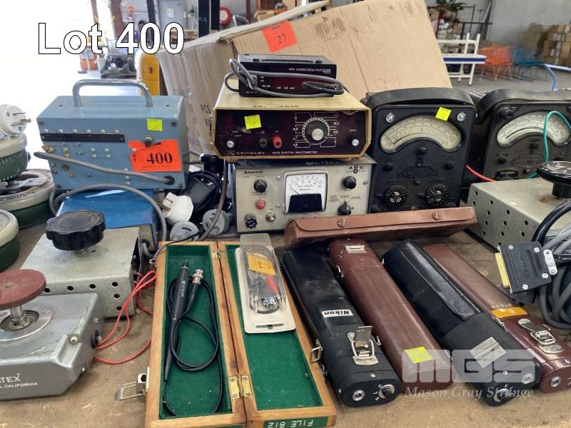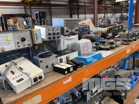 ELECTRONICS ENGINEERING EQUIPMENT, SOME VINTAGE INCLUDING UNIVERSAL AVO METERS, EPROM PROGRAMMERS, DIGITAL MULTIMETERS, HEWLETT & PACKARD OSCILLATOR, ANALIZERS, CHECKERS, DIAL CONTROLS, ETC, 1 x SHELF
