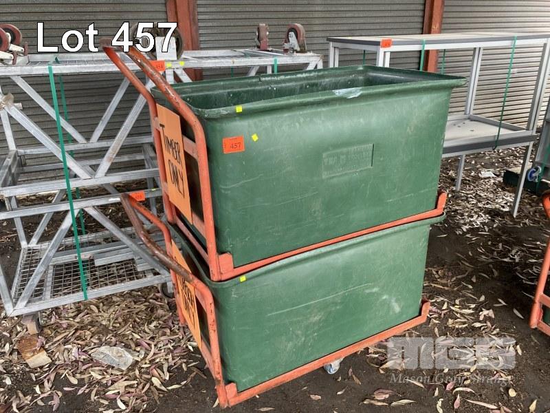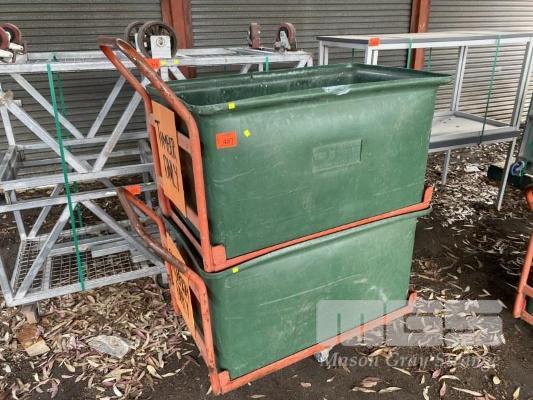2 x POLY BIN TROLLEYS, EACH 400 LITRE