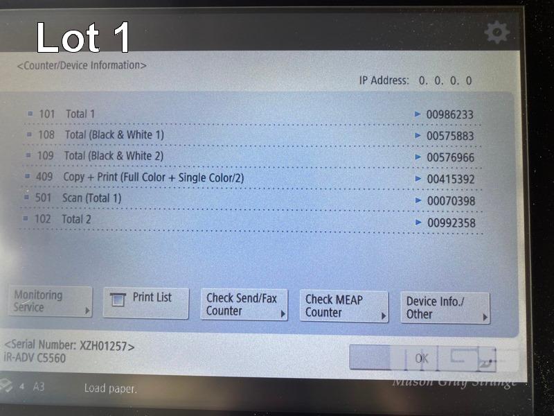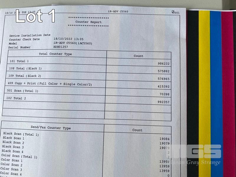 PHOTOCOPIER, CANON imageRUNNER ADVANCE C5560i COLOUR, ADF, PRINTER USB & NETWORK PORTS, STAPLE FINISHER, 415,392 COLOUR & 576,965 B&W COPIES SHOWING (TEST PAGE ATTACHED) S/N:XZH01257