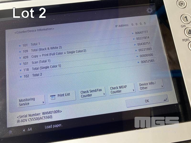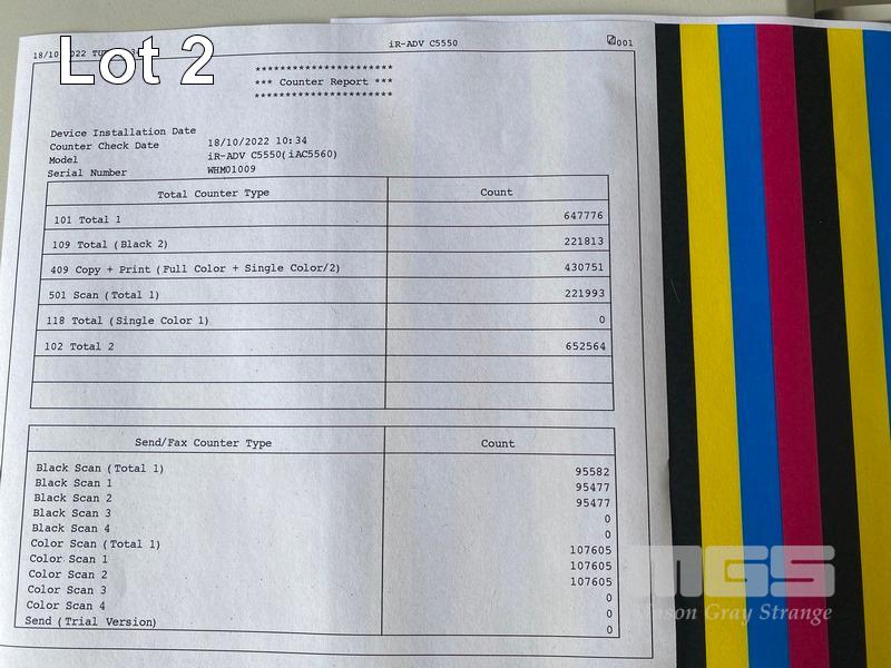 PHOTOCOPIER, CANON imageRUNNER ADVANCE C5550i COLOUR, ADF, PRINTER USB & NETWORK PORTS, INNER FINISHER-H1, 430,751 COLOUR & 221,813 B&W COPIES SHOWING (TEST PAGE ATTACHED) S/N:WHM01009