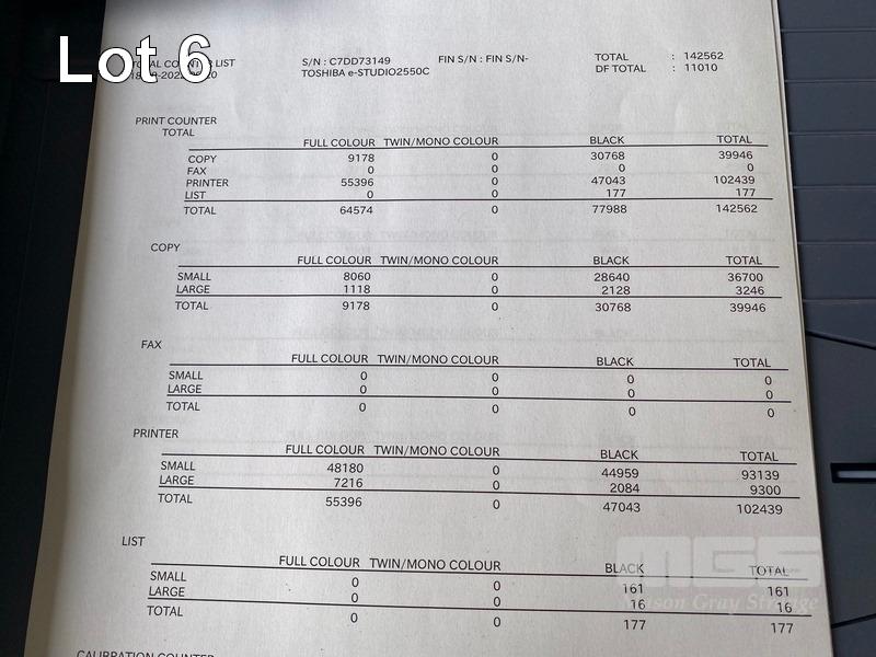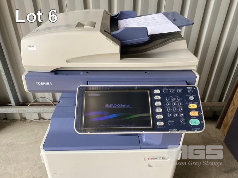 PHOTOCOPIER, TOSHIBA e-STUDIO 2550C COLOUR, ADF, PRINTER USB & NETWORK PORTS, 64,574 COLOUR & 77,988 B&W COPIES SHOWING (TEST PAGE ATTACHED) (NOTE: MESSAGE "CALL FOR SERVICE C970") S/N:C7DD73149