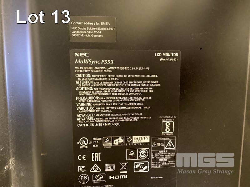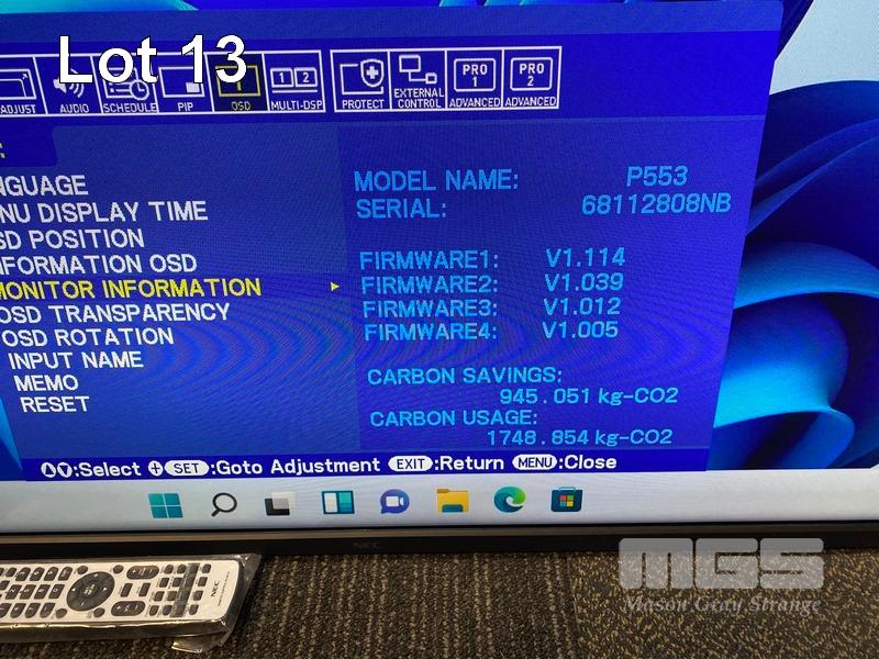 MONITOR, NEC MULTISYNC P553 55" COMMERCIAL LCD DISPLAY WITH REMOTE (NO STAND) S/N:68112808NB