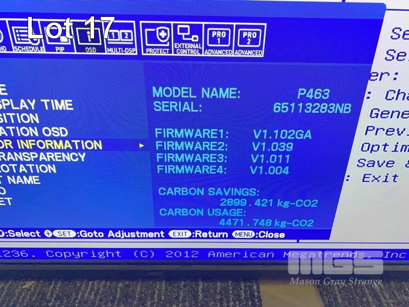 MONITOR, NEC MULTISYNC P463 46" COMMERCIAL LCD DISPLAY, WITH BUILT-IN PC MODULE, CORE i5 4400E @ 2.7GHz, 4GB RAM, 128GB SSD (NO REMOTE, NO STAND) S/N:65113283NB