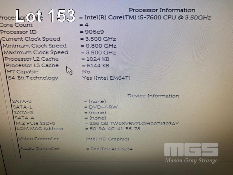 DESKTOP PC, DELL OPTIPLEX 7050 SFF, CORE i5 7600 (7TH GEN) @ 3.5GHz, 8GB DDR4 RAM, 256GB NVMe M.2 SSD, DVD-RW, INTEL HD VIDEO, 9 x USB, 1 x USB-C, WINDOWS 10 PRO INSTALLED (NO KEYBOARD, NO MOUSE) S/N:BHJB2K2