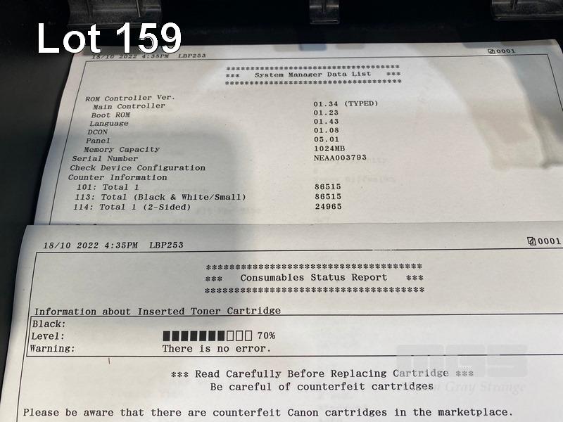 PRINTER, CANON imageCLASS LBP253x LASER, USB, NETWORK, 86,515 PAGES (TEST PAGE ATTACHED) S/N:NEAA003793