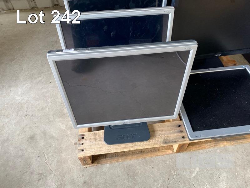 7 x ACER AL1716 17" LCD MONITORS, 2 x ACER B193W 19" LCD MONITORS, 1 x HP L1750 17" LCD MONITOR (NO STAND) (NO CABLES)