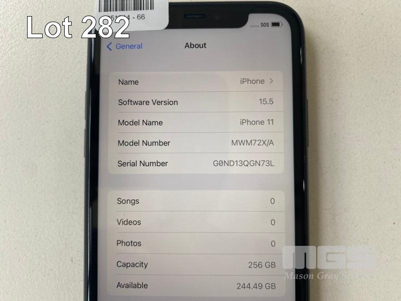 APPLE iPHONE 11, 256GB, BLACK, MODEL MHDA3X/A (NO CHARGER, NO CABLE) S/N:G0ND13QGN73L