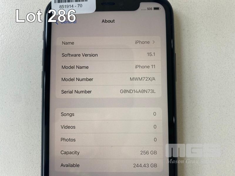APPLE iPHONE 11, 256GB, BLACK, MODEL MHDA3X/A (NO CHARGER, NO CABLE) S/N:G0ND14A0N73L