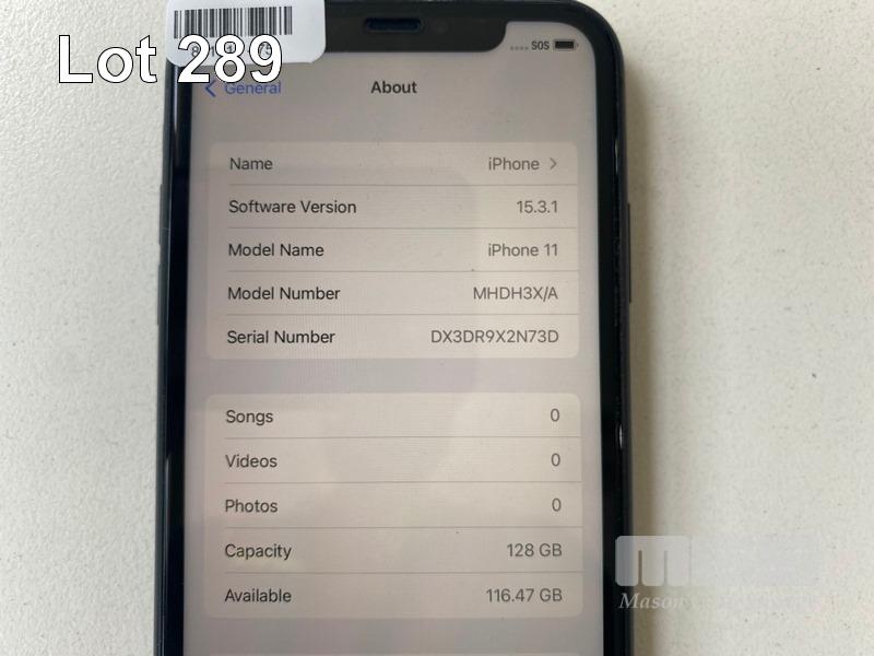 APPLE iPHONE 11, 128GB, BLACK, MODEL MHDA3X/A (NO CHARGER, NO CABLE) S/N:DX3DR9X2N73D