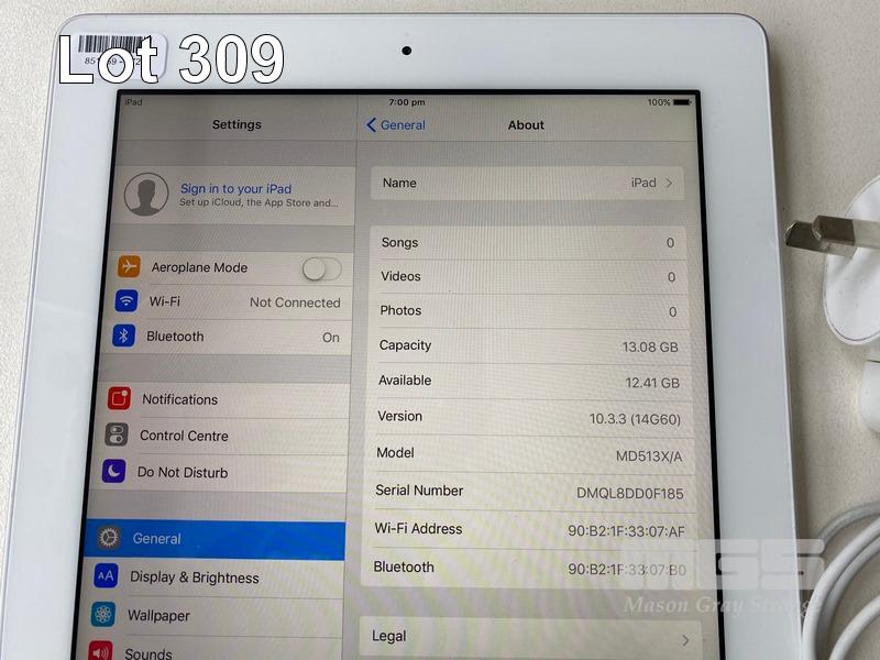 APPLE iPAD 4TH GEN, 16GB, Wi-Fi, SILVER, MODEL A1458 WITH CABLE & CHARGER S/N:DMQL8DD0F185