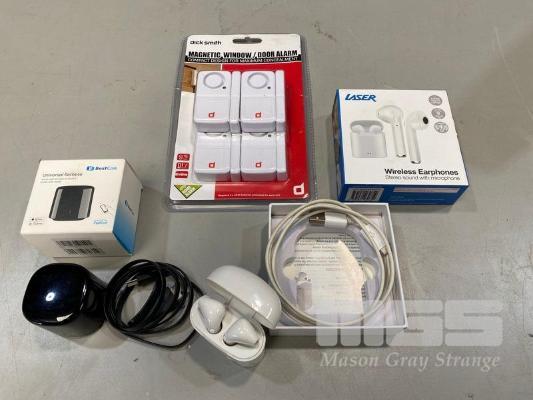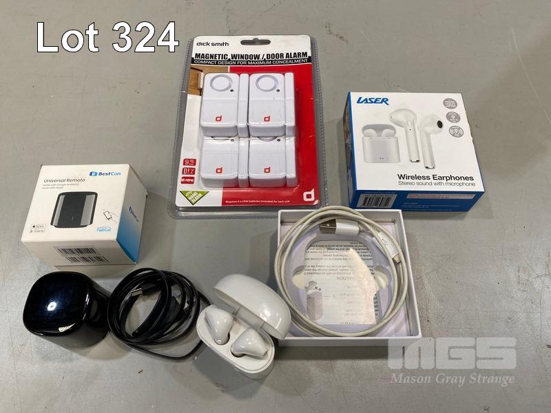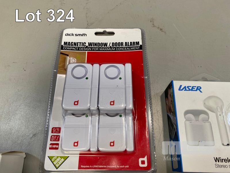 DICK SMITH WINDOW/DOOR ALARM, LASER WIRELESS EARPHONES, BESTCON UNIVERSAL REMOTE
