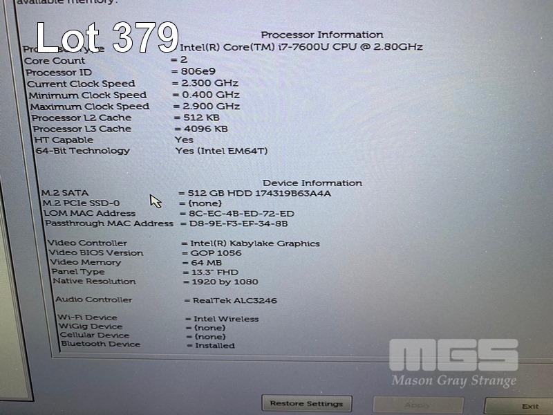 LAPTOP, DELL LATITUDE 7380, CORE i7 7600U (7TH GEN) @ 2.8GHz, 16GB DDR4 RAM, 512GB M.2 SSD, 13.3" WIDESCREEN (1920x1080), INTEL KABYLAKE GRAPHICS, Wi-Fi, BLUETOOTH, WINDOWS 10 HOME INSTALLED & POWER SUPPLY (NOTE: MINOR DAMAGE TO CASING) S/N:48P76M2