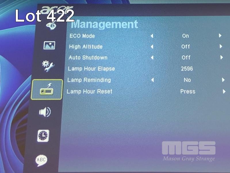 PROJECTOR, ACER P1201B DLP, 2,700 LUMENS, HDMI INPUT, 2,596 HOURS SHOWING (NO REMOTE) S/N:21900118359
