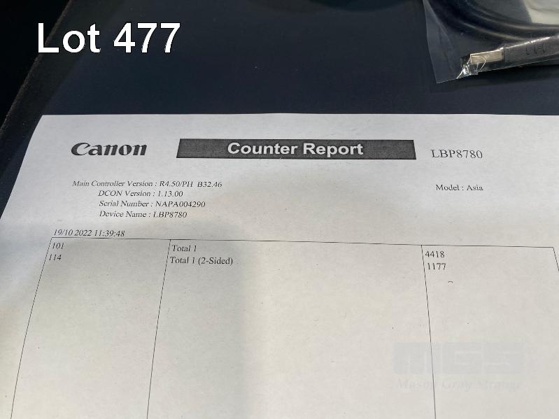 PRINTER, CANON imageCLASS LBP8780x A3 LASER, USB, NETWORK, 4,418 PAGES (TEST PAGE ATTACHED) S/N:NAPA004290