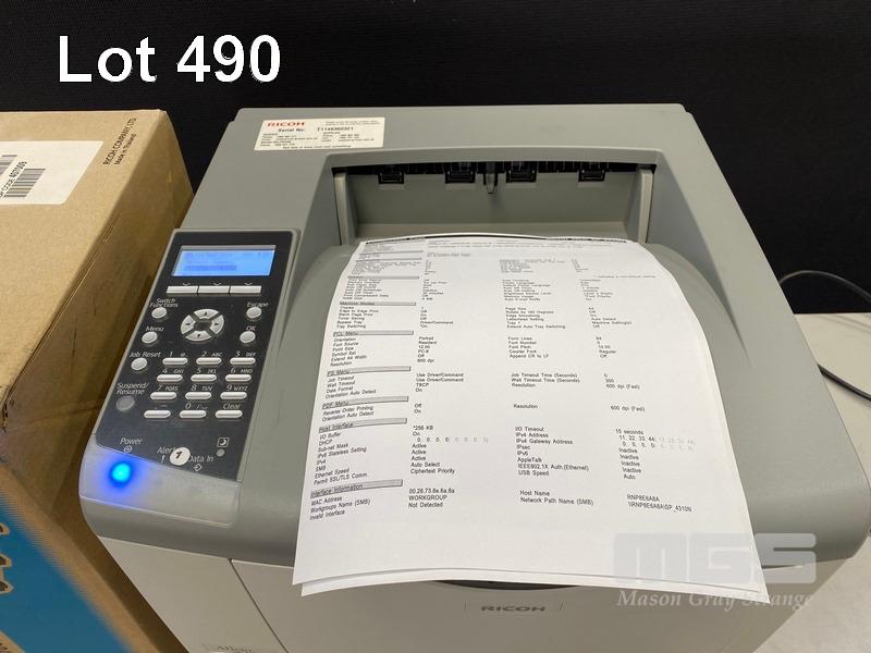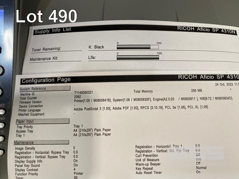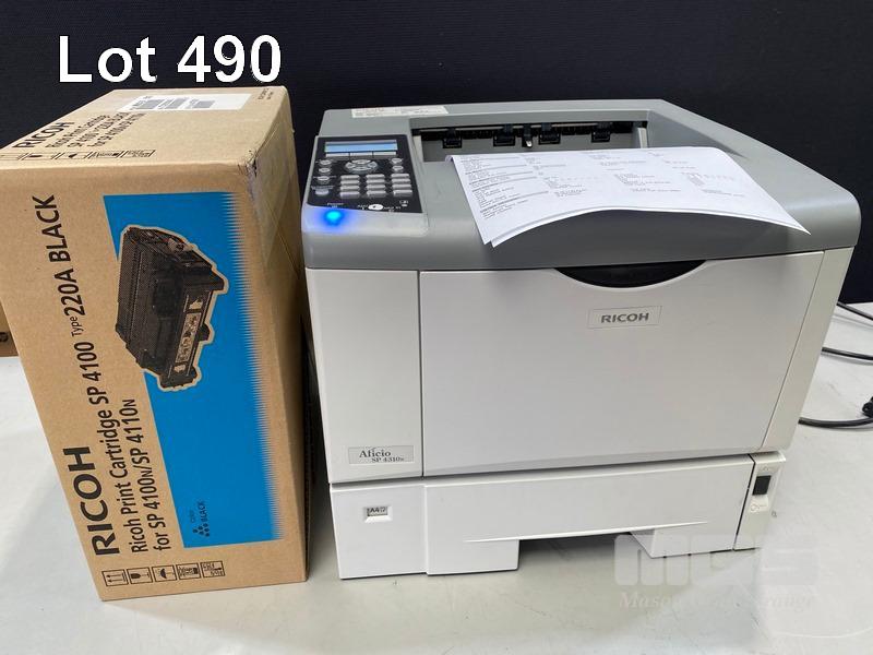 PRINTER, RICOH AFICIO SP 4310n LASER, USB, NETWORK, SPARE TONER, 2,092 PAGES (TEST PAGE ATTACHED) S/N:T1149360321