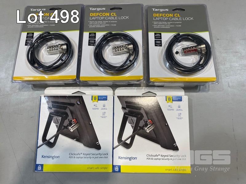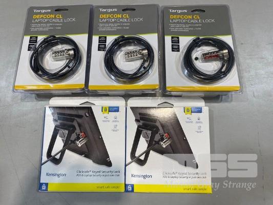 3 x TARGUS DEFCON CL LAPTOP CABLE LOCKS 2 x KENSINGTON CLICKSAFE KEYED SECURITY LOCKS