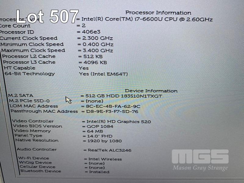 LAPTOP, DELL LATITUDE 7480, CORE i7 6600U (6TH GEN) @ 2.6GHz, 16GB DDR4 RAM, 512GB M.2 SSD, 14" WIDESCREEN (1920x1080), INTEL HD GRAPHICS 520, Wi-Fi, BLUETOOTH, WINDOWS 10 HOME INSTALLED & POWER SUPPLY S/N:BYG6ZM2