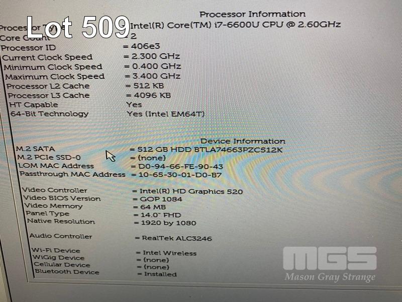 LAPTOP, DELL LATITUDE 7480, CORE i7 6600U (6TH GEN) @ 2.6GHz, 16GB DDR4 RAM, 512GB M.2 SSD, 14" WIDESCREEN (1920x1080), INTEL HD GRAPHICS 520, Wi-Fi, BLUETOOTH, WINDOWS 10 HOME INSTALLED & POWER SUPPLY S/N:G2XPYM2