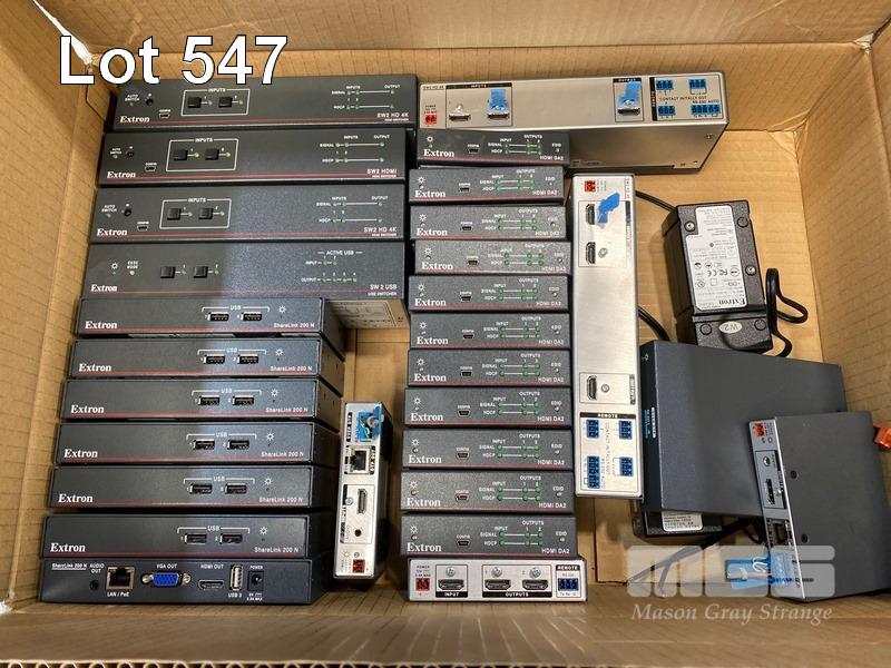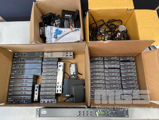 LARGE QTY EXTRON DEVICES INC. DVS 605 VIDEO SCALER, SW2 HD 4K HDMI SWITCHERS, SW2 HDMI SWITCHERS, SW 2 USB SWITCHERS, SHARELINK 200N, HDMI DA2 WITH SMALL NUMBER OF POWER SUPPLIES