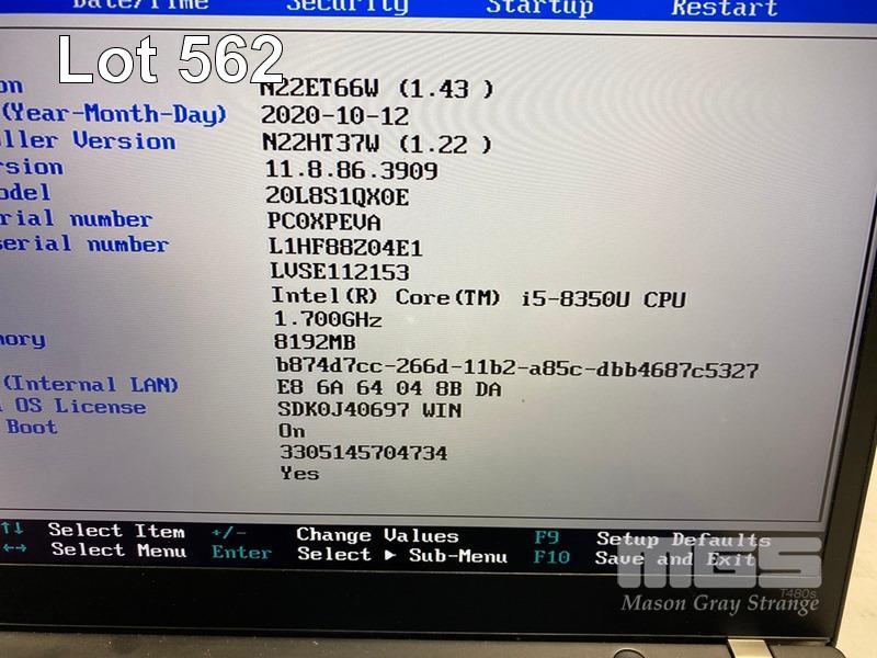 LAPTOP, LENOVO THINKPAD T480s, TYPE 20L8, CORE i5 8350U (8TH GEN) @ 1.7GHz, 8GB DDR4 RAM, 512GB NVMe M.2 SSD, 14" TOUCHSCREEN (1920x1080), INTEL HD VIDEO, Wi-Fi, BLUETOOTH, WINDOWS 11 PRO INSTALLED (NO USB-C POWER SUPPLY) (NOTE: MINOR MARKS ON SCREEN, BATTERY NOT CHARGING, WHITE SPOT SCREEN BLEMISHES) S/N:PC0XPEVA