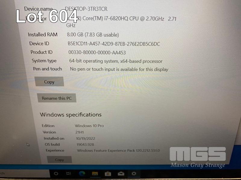 LAPTOP, LENOVO THINKPAD P50 MOBILE WORKSTATION, TYPE 20EQ, CORE i7 6820HQ (6TH GEN) @ 2.7GHz, 8GB DDR4 RAM, 256GB SSD, 15.6" WIDESCREEN (1920x1080), 4GB NVIDIA QUADRO M2000M VIDEO, Wi-Fi, BLUETOOTH, WINDOWS 10 PRO INSTALLED & POWER SUPPLY (NOTE: MARKS ON SCREEN, WHITE SPOT SCREEN BLEMISHES, 1 x USB FAULTY) S/N:PC0C4DJX