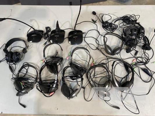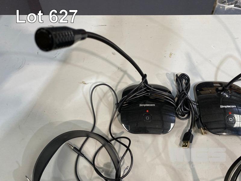 3 x SIMPLECOM USB DESK MICROPHONES, UM350 8 x VERBATIM HEADSETS, 6 x SHINTARO HEADSETS, QTY KEYBOARDS & MICE