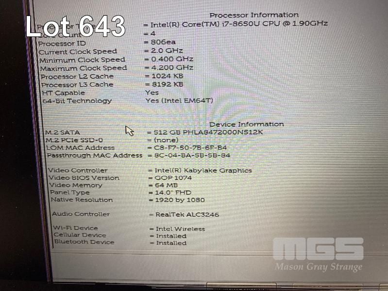 LAPTOP, DELL LATITUDE 5490, CORE i7 8650U (8TH GEN) @ 1.9GHz, 32GB DDR4 RAM, 512GB M.2 SSD, 14" WIDESCREEN (1920x1080), INTEL KABYLAKE GRAPHICS, CELLULAR, Wi-Fi, BLUETOOTH, WINDOWS 11 PRO INSTALLED (NO POWER SUPPLY) (NOTE: DAMAGED SCREEN) S/N:BY3KRV2