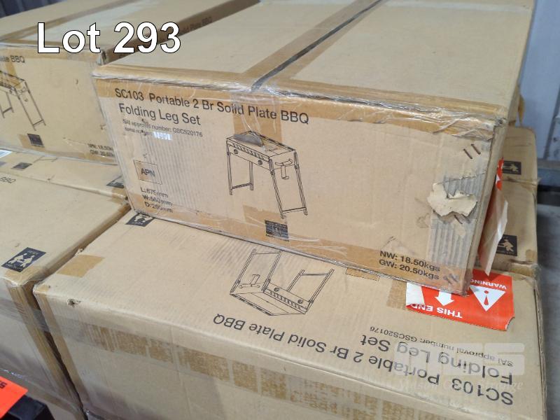 PORTABLE 2-BURNER SOLID PLATE GAS BBQ WITH FOLDING LEGS. NEW IN BOX. RRP $199