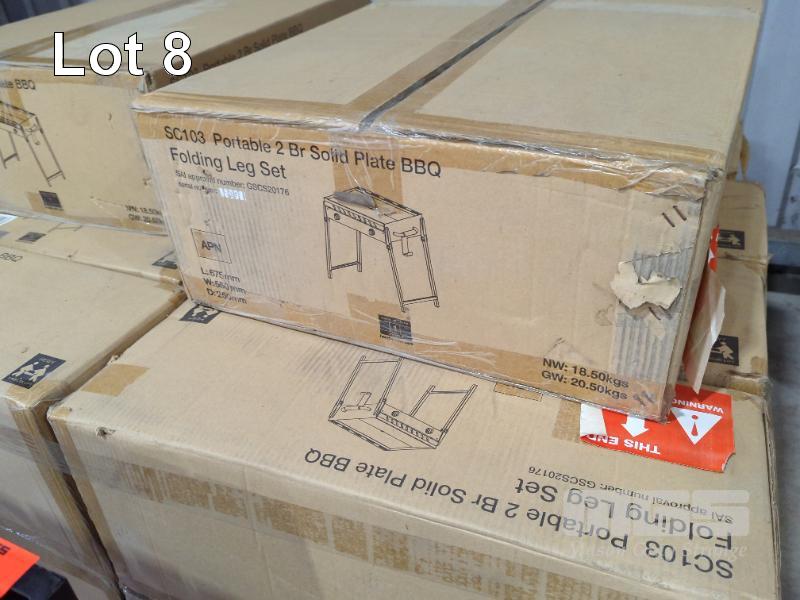 PORTABLE 2-BURNER SOLID PLATE GAS BBQ WITH FOLDING LEGS.