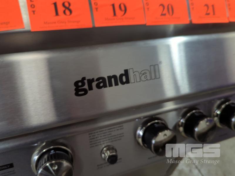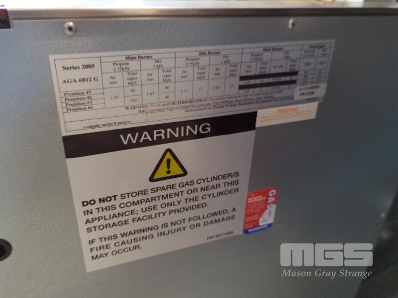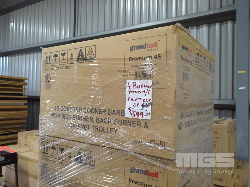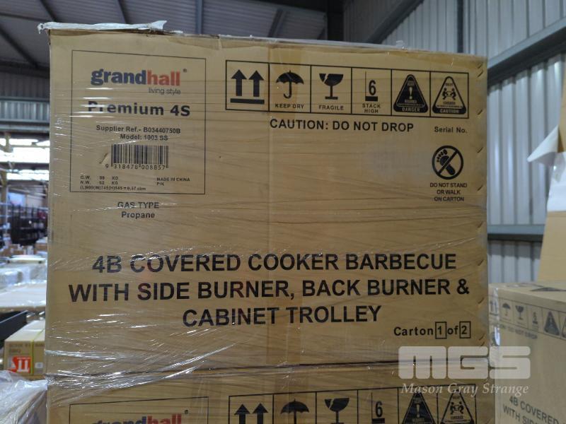 GRANDHALL PREMIUM 4S STAINLESS STEEL COVERED COOKER GAS BBQ 4-BURNER WITH SIDE BURNER, BACKBURNER & CABINET TROLLEY. NEW IN BOX (2 x BOXES). RRP $1,599