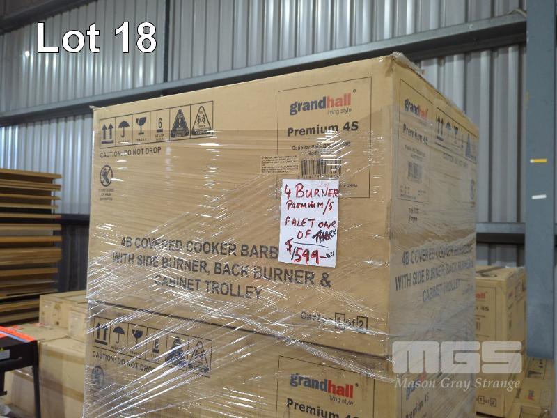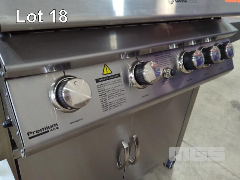 GRANDHALL PREMIUM 4S STAINLESS STEEL COVERED COOKER GAS BBQ 4-BURNER WITH SIDE BURNER, BACKBURNER & CABINET TROLLEY. NEW IN BOX (2 x BOXES). RRP $1,599
