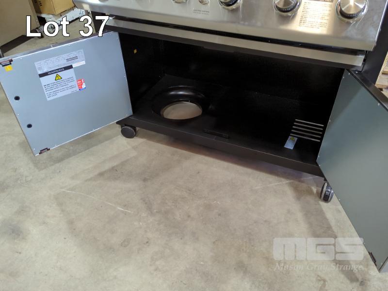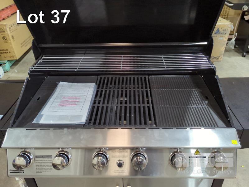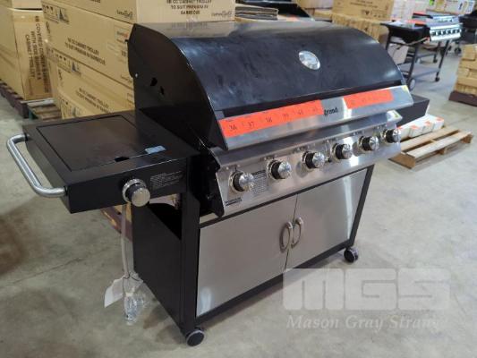 GRANDHALL PREMIUM 6V GLOSS BLACK COVERED COOKER GAS BBQ. 6-BURNER WITH SIDE BURNER & CABINET TROLLEY. NEW IN BOX (2 x BOXES). RRP $799