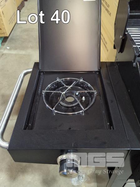 GRANDHALL PREMIUM 6V GLOSS BLACK COVERED COOKER GAS BBQ. 6-BURNER WITH SIDE BURNER & CABINET TROLLEY. NEW IN BOX (2 x BOXES). RRP $799