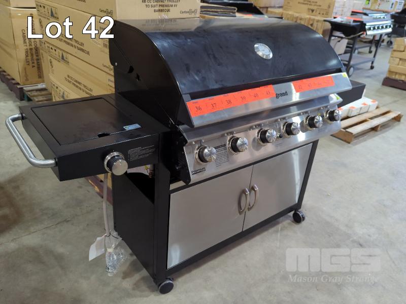GRANDHALL PREMIUM 6V GLOSS BLACK COVERED COOKER GAS BBQ.