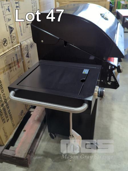 GRANDHALL PREMIUM 4V GLOSS BLACK COVERED COOKER GAS BBQ.