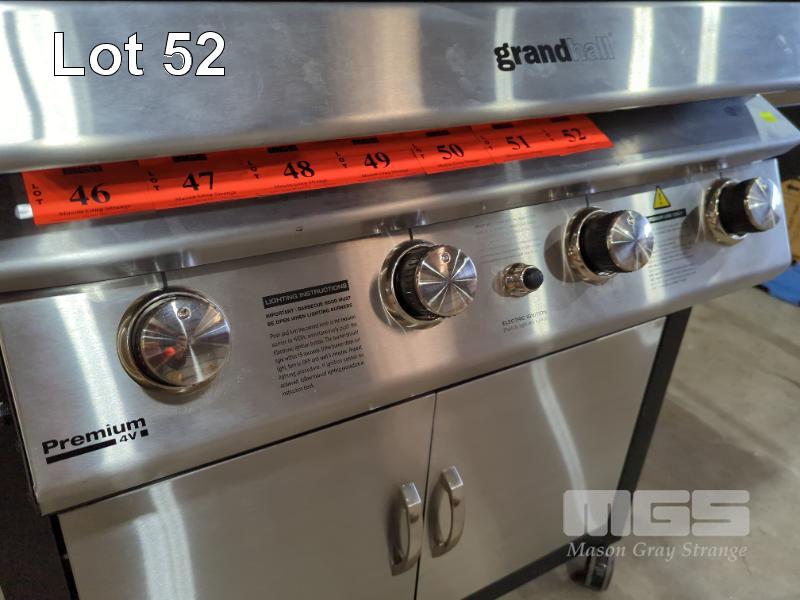 GRANDHALL PREMIUM 4V GLOSS BLACK COVERED COOKER GAS BBQ.