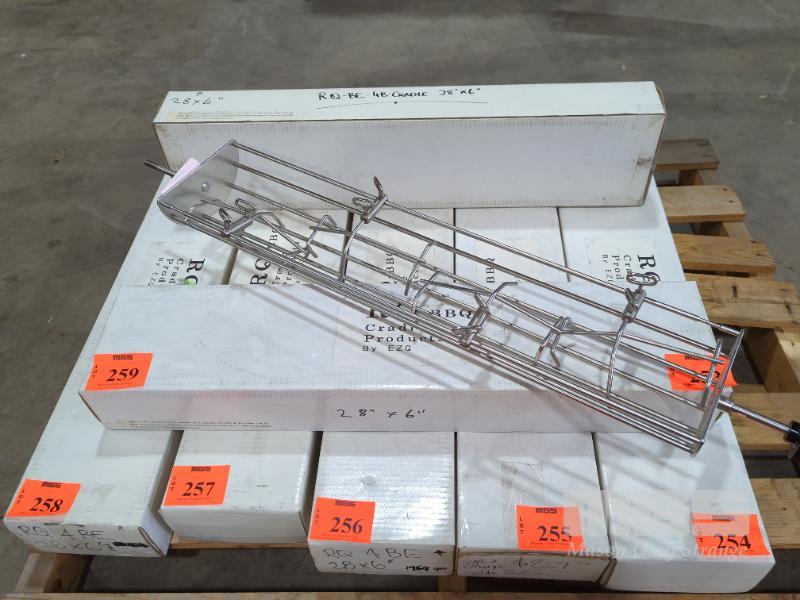 28 X 6" STAINLESS STEEL ROTISSERIE CRADLE & SKEWER CLAMPS.