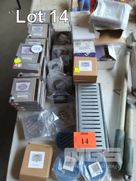 COLLECTION OF ASSORTED FLOOR & SHOWER GRATES. VARIOUS SHAPES, SIZES & MATERIALS. 40 ITEMS APPROX.