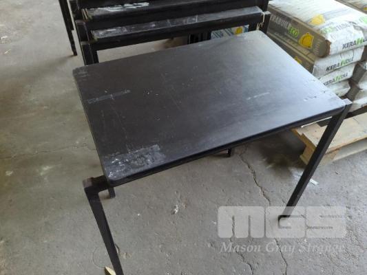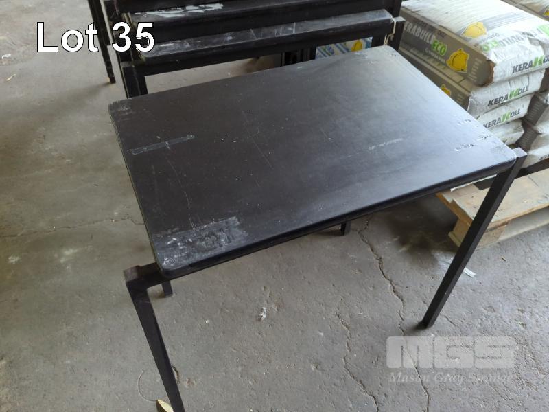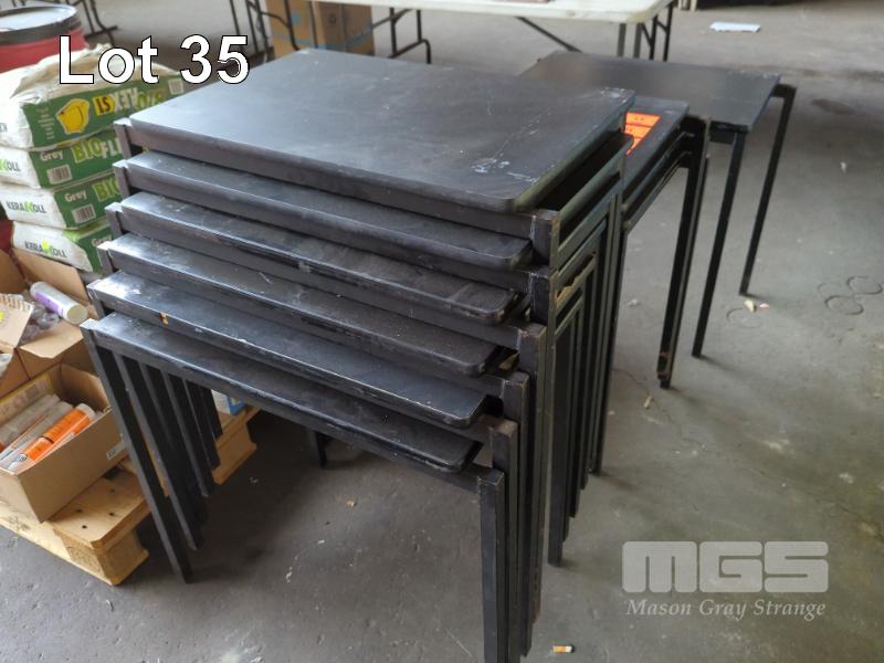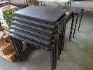 10 X STACKABLE EXAM DESKS - STEEL FRAME, LAMINATE TOPS ALL IN BLACK.