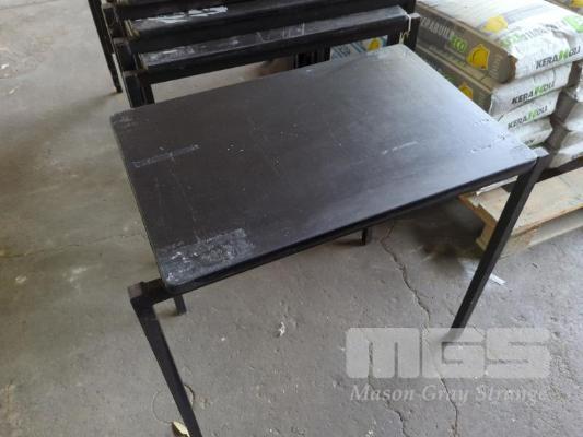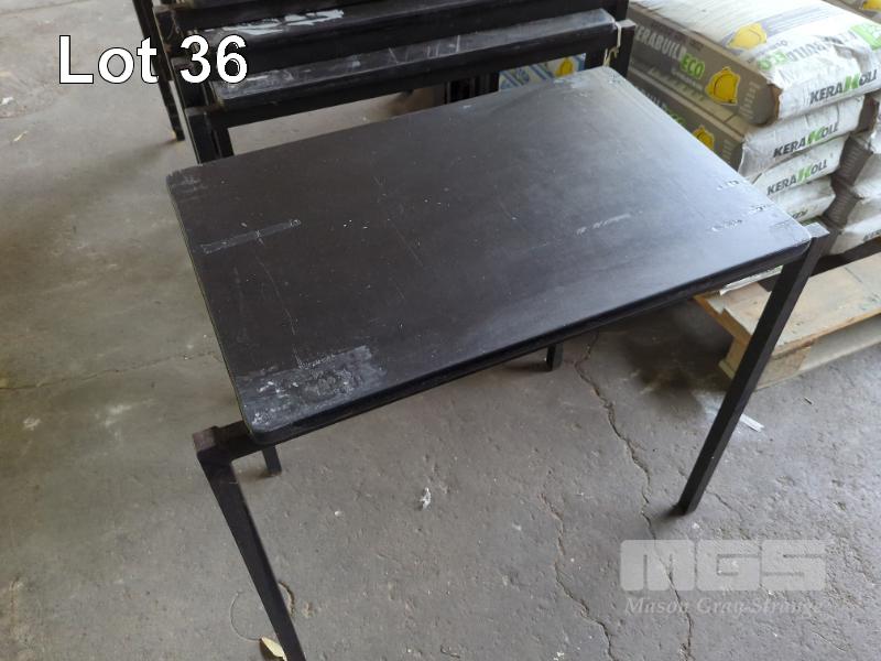 10 X STACKABLE EXAM DESKS - STEEL FRAME, LAMINATE TOPS ALL IN BLACK.