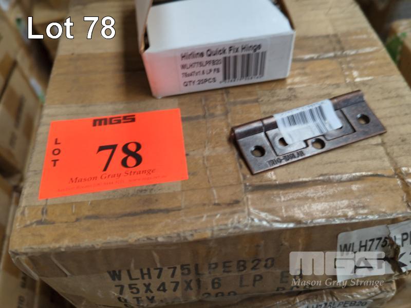 QUANTITY OF TRIO-WARLAN HIRLINE QUICK FIX HINGES - 75 X 47 X 1.6 MM. LOOSE PIN, BRASS PLATED. 10 X TRADE PACKS OF 200 PIECES EACH.