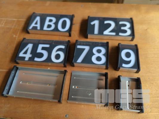 TRIO "SOLAR DIGITS" SOLAR HOUSE NUMBER SYSTEM. COMPRISING AS FOLLOWS. SOLAR HOUSE LETTER "A" - 1 X CARTON OF 80 PIECES. SOLAR HOUSE LETTER "B" - 4.5 X CARTONS OF 80 PIECES EACH. SOLAR HOUSE NUMBER "0" - 2 X CARTONS OF 80 PIECES EACH. SOLAR HOUSE NUMBER "1" - 1 X CARTON OF 80 PIECES. SOLAR HOUSE NUMBER "2" - 1 X CARTON OF 80 PIECES. SOLAR HOUSE NUMBER "3" - 1 X PART CARTON. SOLAR HOUSE NUMBER "4" - 1 X CARTON OF 80 PIECES. SOLAR HOUSE NUMBER "5" - 1 X CARTON OF 80 PIECES. SOLAR HOUSE NUMBER "6" - 2 X CARTONS OF 80 PIECES EACH. SOLAR HOUSE NUMBER "7" - 1 X CARTON OF 80 PIECES. SOLAR HOUSE NUMBER "8" - 2 X CARTONS OF 80 PIECES EACH. SOLAR HOUSE NUMBER "9" - 3 X CARTONS OF 80 PIECES EACH. SINGLE DIGIT WALL MOUNTS - 3 X CARTONS OF 40 PIECES EACH. DOUBLE DIGIT WALL MOUNTS - 4 X CARTONS OF 40 PIECES EACH. TRIPLE DIGIT WALL MOUNTS - 1 X CARTON OF 40 PIECES.