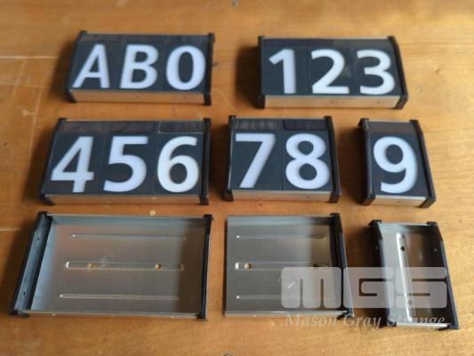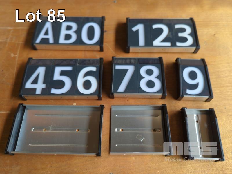 SOLAR HOUSE LETTER "A" - 1 X CARTON OF 80 PIECES. SOLAR HOUSE LETTER "B" - 5 X CARTONS OF 80 PIECES EACH. SOLAR HOUSE NUMBER "0" - 1 X CARTON OF 80 PIECES. SOLAR HOUSE NUMBER "1" - 1 X CARTON OF 80 PIECES. SOLAR HOUSE NUMBER "2" - 1 X CARTON OF 80 PIECES. SOLAR HOUSE NUMBER "3" - 1 X PART CARTON - HALF FULL. SOLAR HOUSE NUMBER "4" - 1 X CARTON OF 80 PIECES. SOLAR HOUSE NUMBER "5" - 1 X CARTON OF 80 PIECES. SOLAR HOUSE NUMBER "6" - 1.75 X CARTONS OF 80 PIECES EACH. SOLAR HOUSE NUMBER "7" - 1 X CARTON OF 80 PIECES + 3 X PACKS OF 5. SOLAR HOUSE NUMBER "8" - 1 X CARTON OF 80. SOLAR HOUSE NUMBER "9" - 3 X CARTONS OF 80 PIECES EACH. SINGLE DIGIT WALL MOUNTS - 3 X CARTONS OF 40 PIECES EACH. DOUBLE DIGIT WALL MOUNTS - 4 X CARTONS OF 40 PIECES EACH. TRIPLE DIGIT WALL MOUNTS - NONE